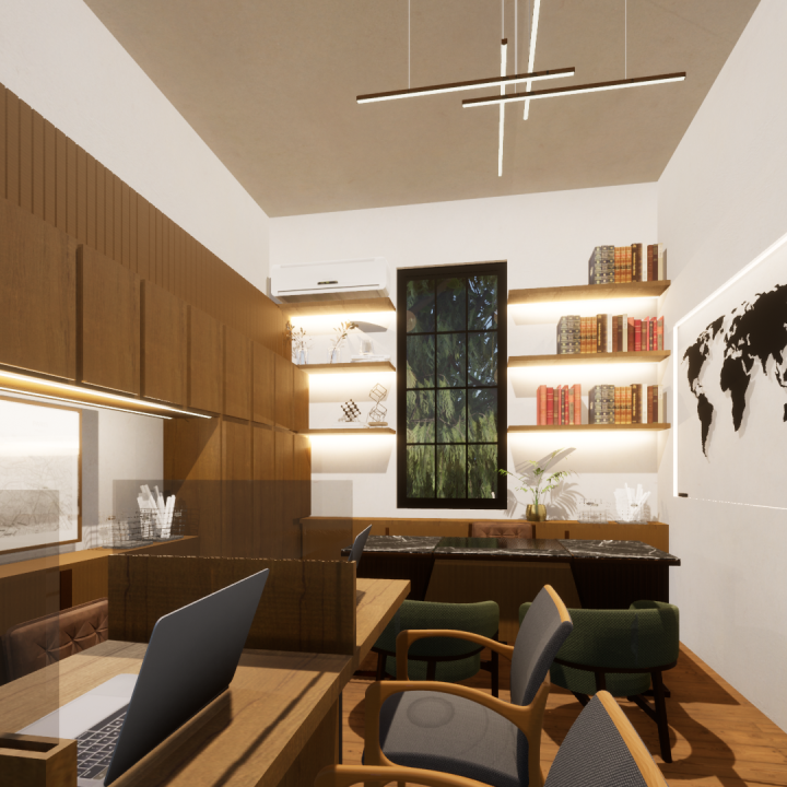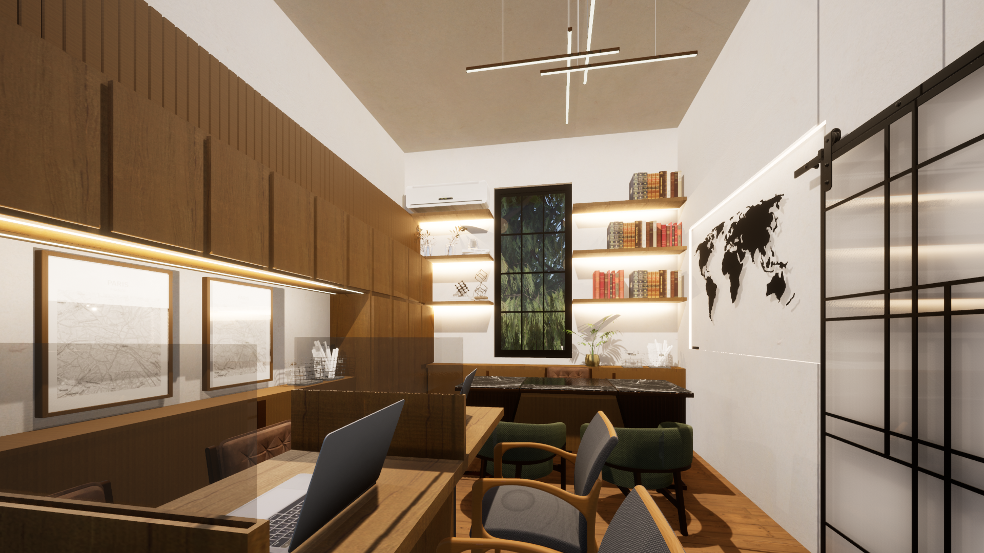 Projeto de interiores administrativo e Estúdio nesse projeto utilizamos um conjunto de princípios de design e layout que visam otimizar a funcionalidade e a eficiência dos espaços destinados a atividades administrativas e também ao espaço de gravação.