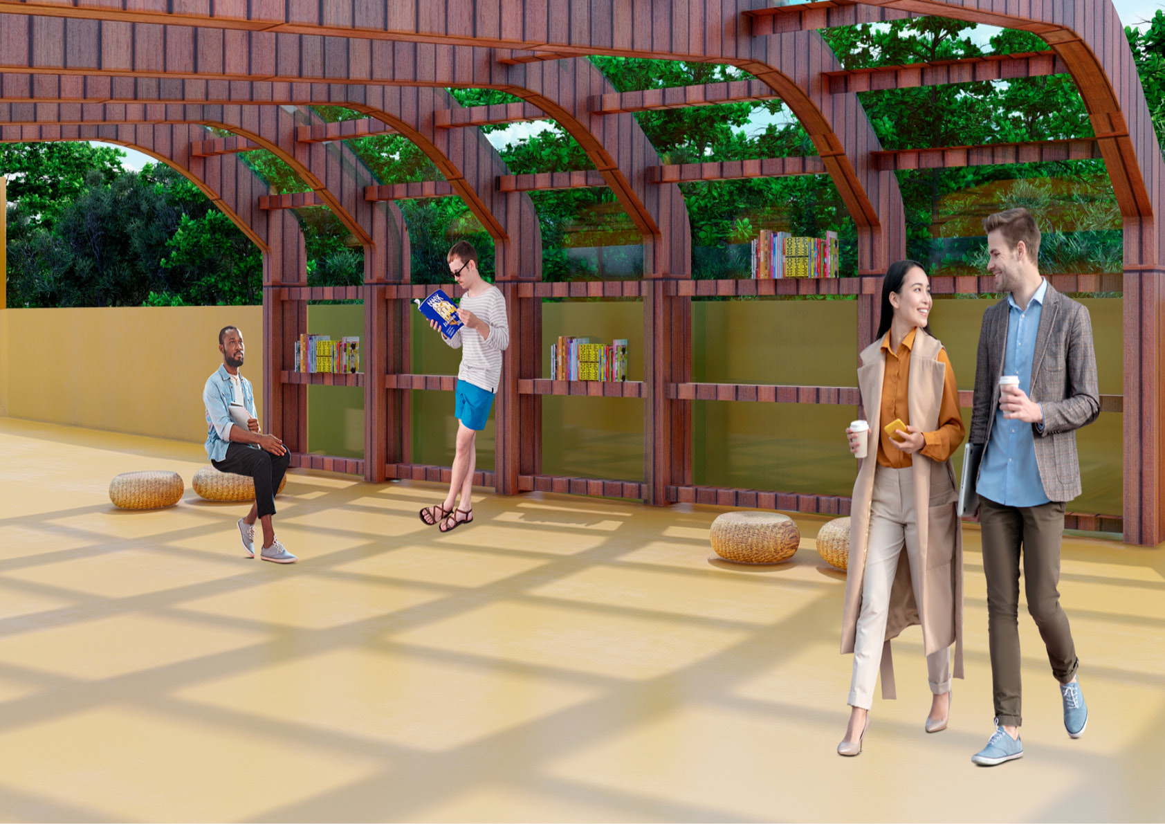 O Parque Linear com seu design orgânico trás como conceito a FITA TUSA( material reciclado de resíduo) criando um entrelaçamento entre o natural e o urbano.